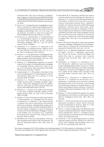 34. Резер Т. М. Патриотическое воспитание молодежи в условиях современных вызовов // Педагогический журнал Башкортостана. 2023. № 3 (101). С. 45-56. DOI: 10.21510/18173292_2023_101_3_45_56 EDN: THFYGP