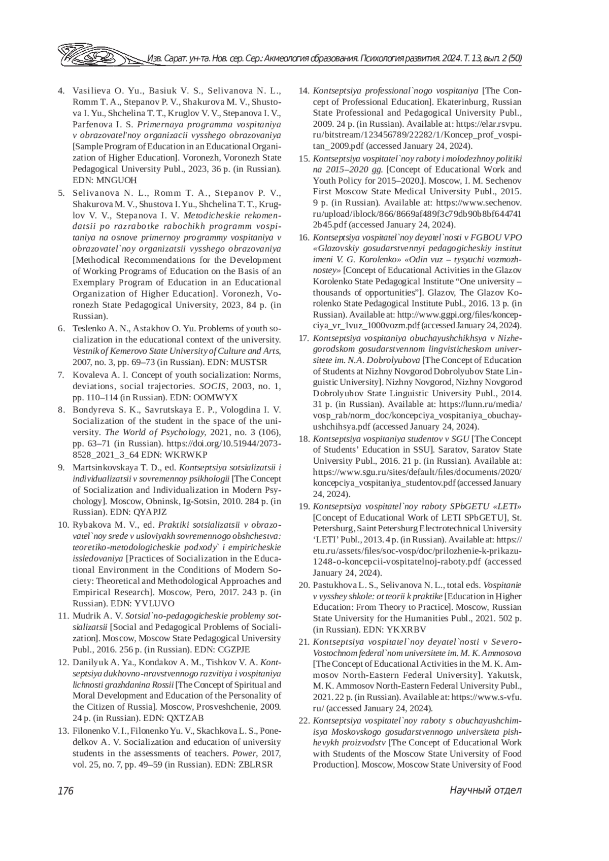 18. Концепция воспитания студентов в СГУ. Саратов: СГУ имени Н. Г. Чернышевского, 2016. 21 с. URL: https://www.sgu.ru/sites/default/files/documents/2020/koncepciya_vospitaniya_studentov.pdf (дата обращения: 24.01.2024).