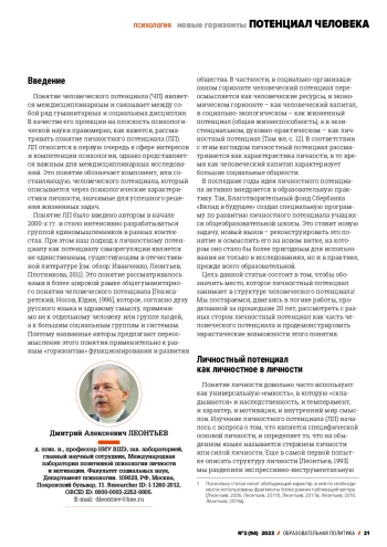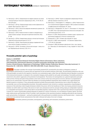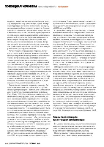 22. Леонтьев Д. А. (2019а). Три мишени: личностный потенциал - зачем, что и как? Образовательная политика, 3 (79), 10-16. EDN: NYPXOL