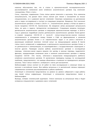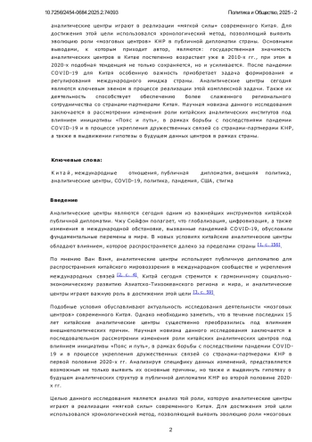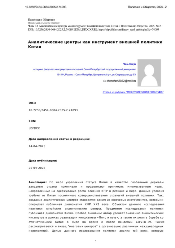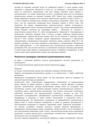 6. Zhou W. Think tanks with Chinese characteristics // International Sociology Reviews. 2023. № 38(2). С. 194-209.