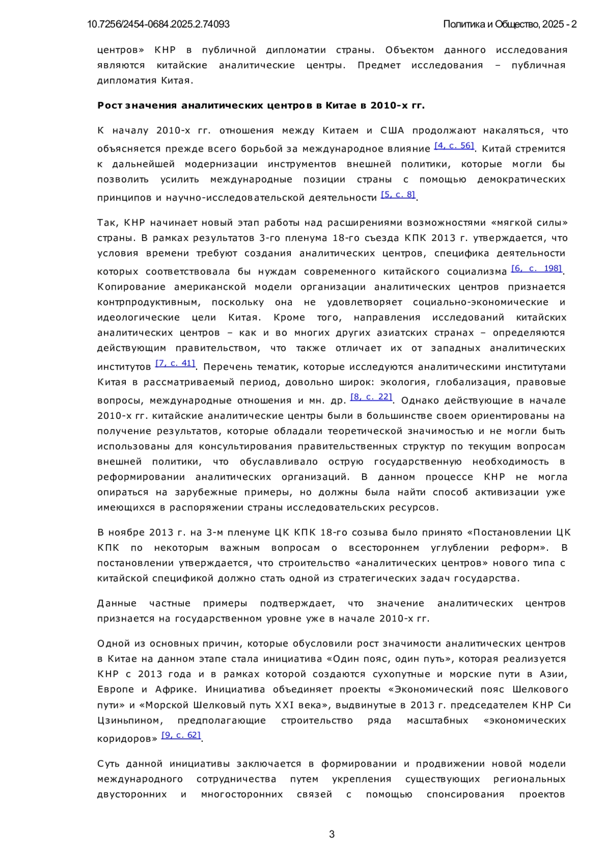 5. Маслов А.А. Трансформация аналитических центров как элемента “мягкой силы” Китая в 2010-2020 гг. // Контуры глобальных трансформаций: политика, экономика, право. 2021. № 14(4). С. 6-21. DOI: 10.23932/2542-0240-2021-14-4-1