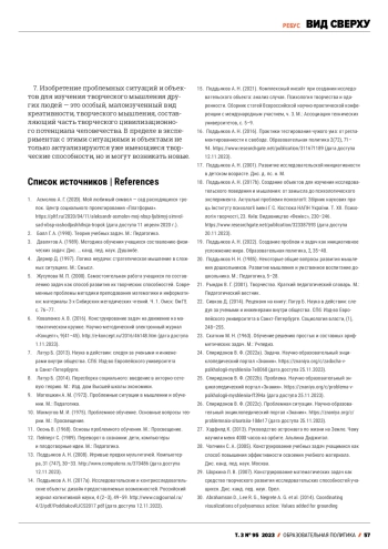 14. Поддьяков А. Н. (2017а). Исследовательские и контрисследовательские объекты: дизайн предоставляемых возможностей. Российский журнал когнитивной науки, 4 (2-3), 49-59. http://www.cogjournal.ru/4/3/pdf/PoddiakovRJCS2017.pdf (дата доступа 12.11.2023). EDN: XZRPZR