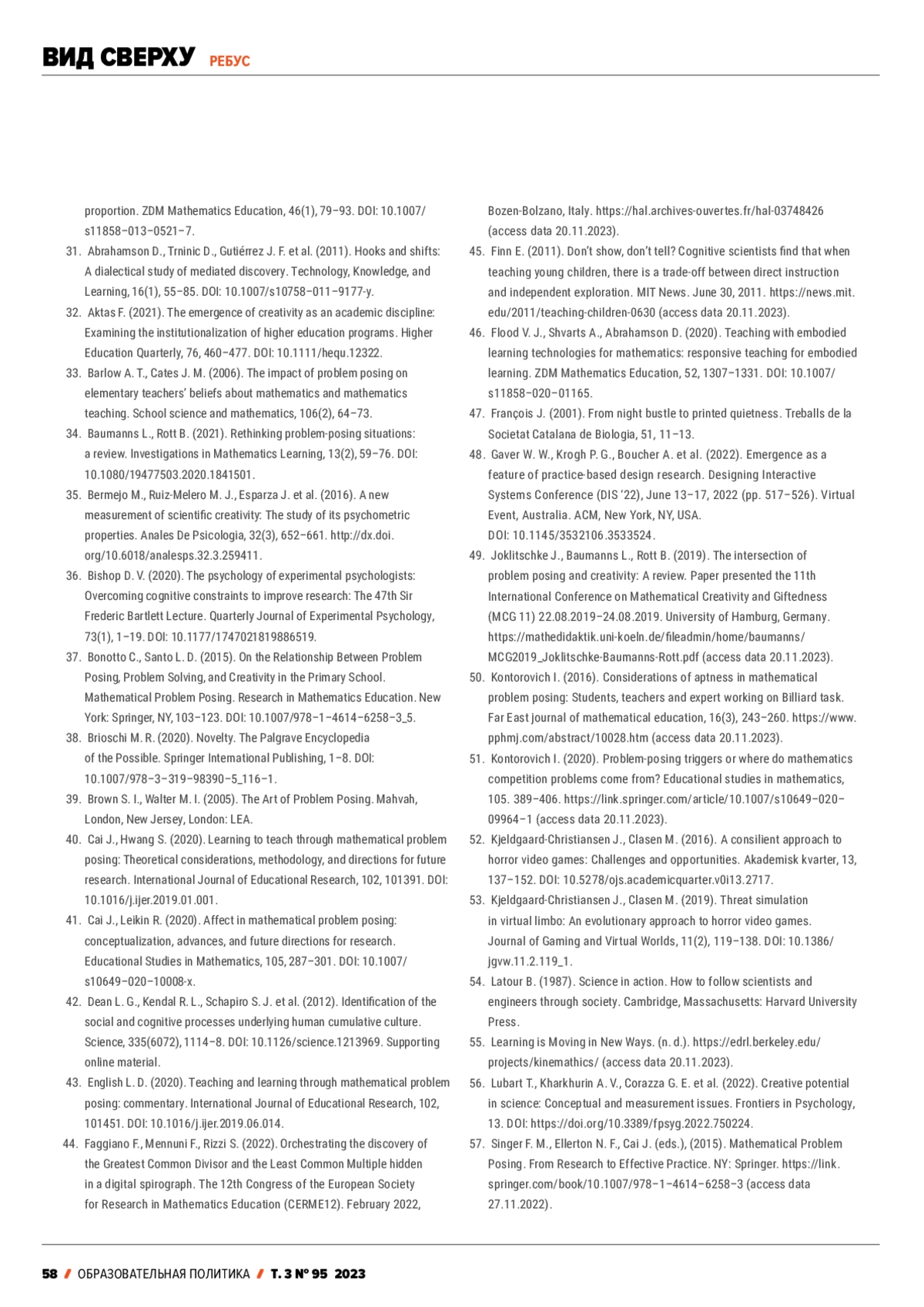 51. Kontorovich I. (2020). Problem-posing triggers or where do mathematics competition problems come from? Educational studies in mathematics, 105. 389-406. https://link.springer.com/article/ (access data 20.11.2023). DOI: 10.1007/s10649-020-09964-1 EDN: WAXBLW