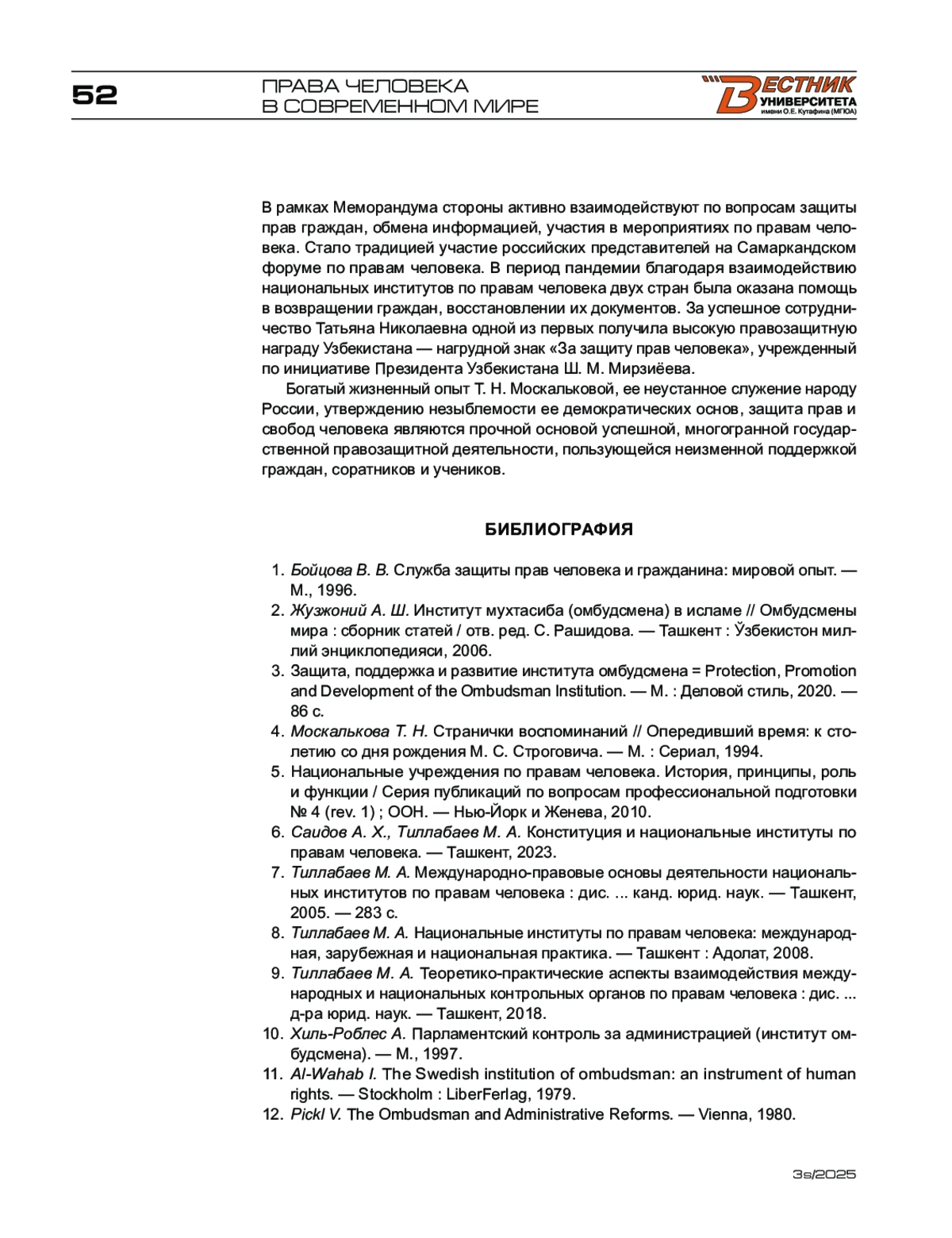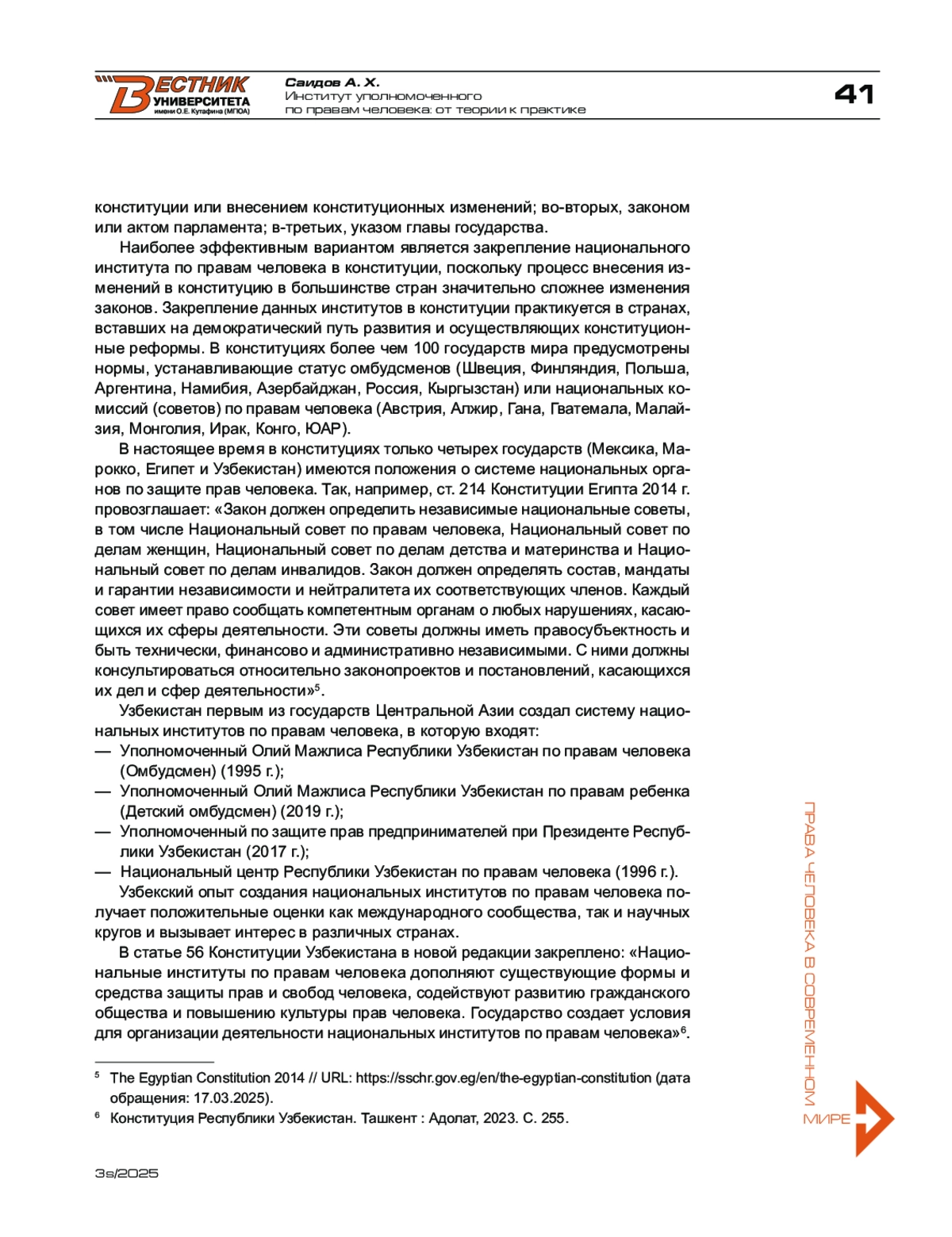 6. Саидов А. Х., Тиллабаев М. А. Конституция и национальные институты по правам человека. - Ташкент, 2023.