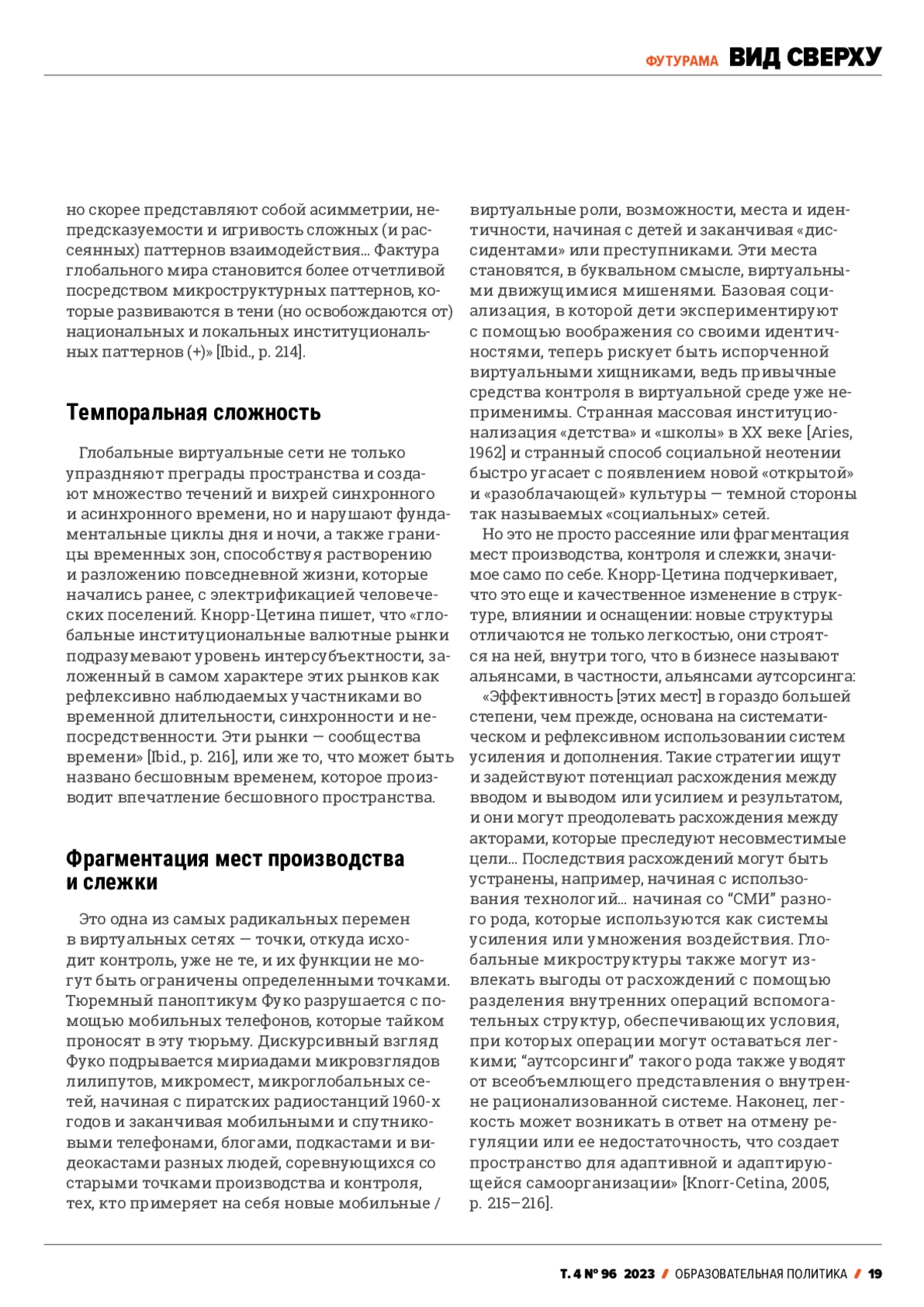 7. Knorr-Cetina K. (2005).Complex global microstructures: the new terrorist societies. Theory, Culture & Society, 22(5), 213-234. DOI: 10.1177/0263276405057200 EDN: JTTLXN