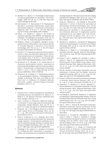 13. Tsotsoros C. E., Hershey D. A., Kiso H., Koposko J. L. Racial differences in anticipated satisfaction with life during retirement // Work, Aging and Retirement. 2019. Vol. 5, № 3. P. 236-254. DOI: 10.1093/workar/waz002