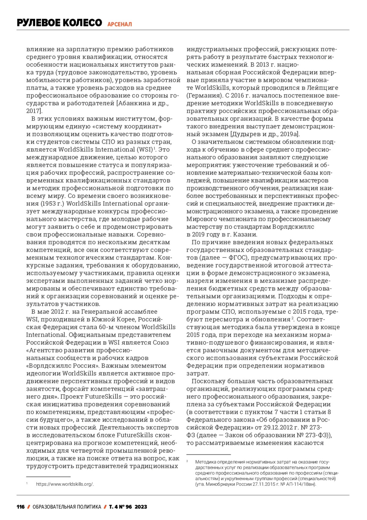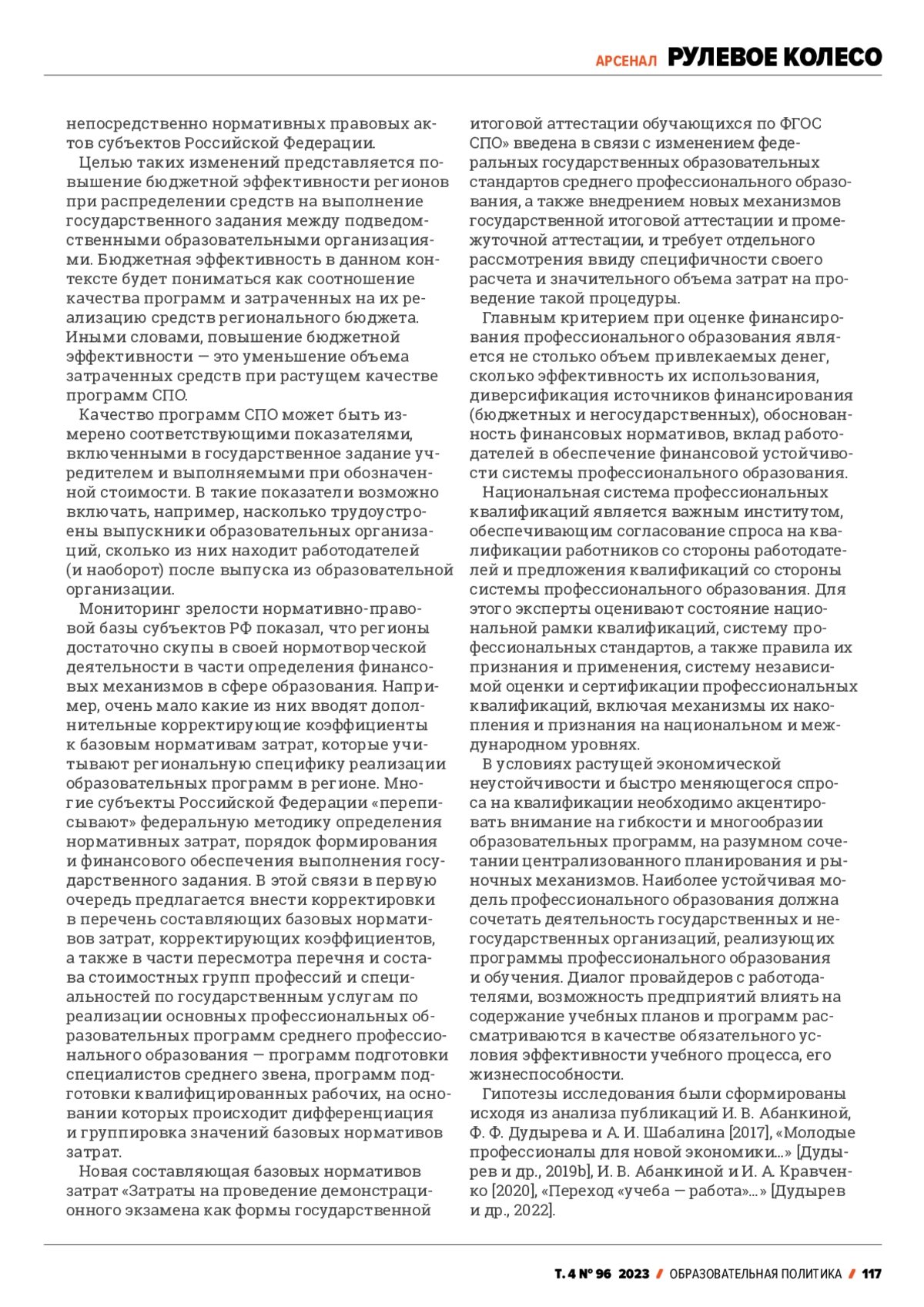 5. Дудырев Ф. Ф., Романова О. А., Шабалин А. И., Абанкина И. В. (2019b). Молодые профессионалы для новой экономики: среднее профессиональное образование в России. М.: Издательский дом НИУ ВШЭ. EDN: CBQJGP