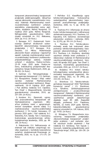 3. Барсегов М.Т. Особенности формирования отдельных структурных составляющих экономической безопасности предприятия / М.Т. Барсегов, М.А. Давыдов, И.А. Митина // Модернизация экономики России: отраслевой и региональный аспект: Материалы международной научно-практической конференции профессорско-преподавательского состава, молодых ученых и студентов, Ростов-на-Дону, 23-30 мая 2020 года. Ростов-на-Дону, Индивидуальный предприниматель Беспамятнов Сергей Владимирович, 2020, с. 98-102. EDN: MBMCHS