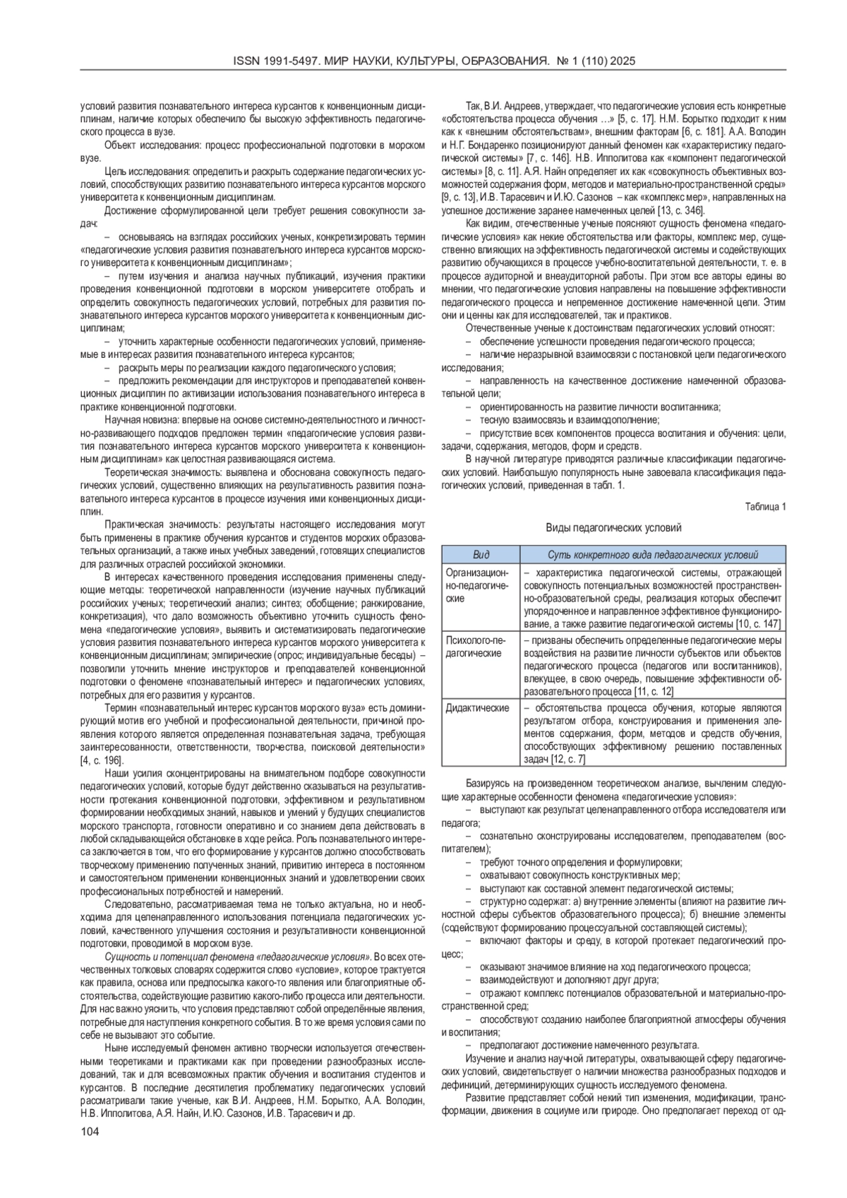 7. Володин А.А., Бондаренко Н.Г Анализ содержания понятия “Организационно-педагогические условия”. Известия Тульского государственного университета. Гуманитарные науки. 2014; № 2: 143-152. EDN: STYCAL