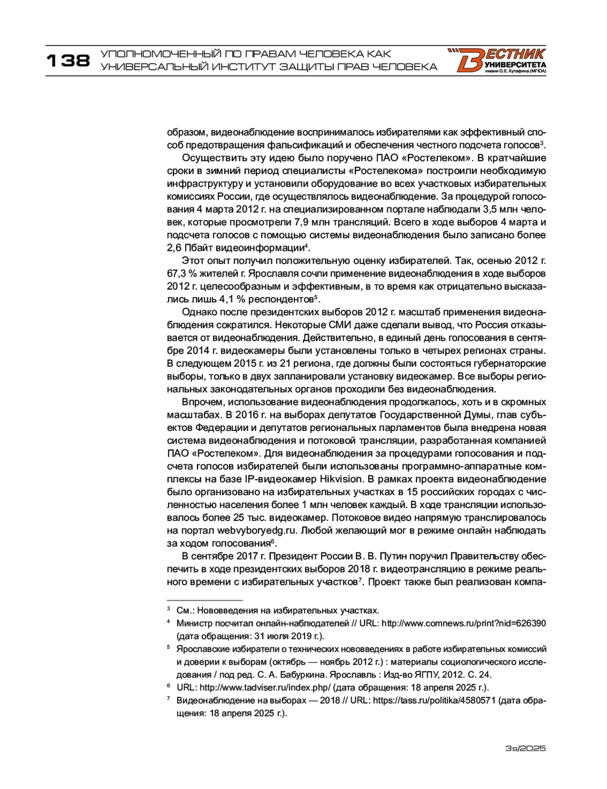 7. Капранова Ю. В. Об общественном контроле за дистанционным электронным голосованием // Юристъ-Правоведъ. - 2023. - № 2 (105). - С. 26-33.