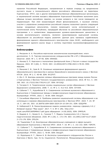 6. Субанов Т. Т., Нурунбетов Б. А. Современное состояние вузовского образования в Кыргызстане // Современные тренды в профессионально-педагогическом образовании. Екатеринбург: РГППУ, 2023. С. 76-84.