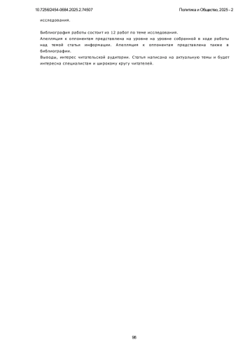 В статье исследуются этнополитические нарративы и технологии символической политики, использовавшиеся кандидатами в ходе президентских выборов 2024 года в Республике Северная Македония (РСМ). Основное внимание уделяется анализу предвыборных программ, публичных выступлений и символической визуализации политических стратегий, отражающих позиции кандидатов по вопросам национальной идентичности, евроинтеграции и межэтнических отношений. Предметом исследования выступают этнополитические (в том числе, идентичностные) нарративы, а также их воплощение в избирательной кампании посредством технологий символической политики. Акцент делается на политико-управленческих потенциалах института президентства в условиях развития этнополитических противоречий между македонским большинством и албанским меньшинством. Исследование показало, что ключевым нарративом кампании стала тема евроинтеграции, однако кандидаты по-разному интерпретировали ее последствия для македонской идентичности. Методологическая база включает системный и институциональный подходы для анализа политических механизмов РСМ; сравнительный этнополитический анализ, позволяющий сопоставить стратегии кандидатов в условиях этнической неоднородности страны; дискурс-анализ предвыборных программ и публичных выступлений; анализ приемов символической визуализации политических концептов (включая дизайн графического оформления материалов политической рекламы кандидатов); анализ вторичных статистических данных. Выводы статьи подчеркивают, что, несмотря на очевидную этнополитическую поляризацию, кандидаты от крупнейших политических партий, претендующие на победу, избегали радикальных заявлений, стремясь сохранить символико-политическую роль президента как гаранта единства гражданской нации. Кандидаты-македонцы стремились сохранить национальную идентичность, критикуя уступки в пользу Греции и Болгарии, в то время как кандидаты-албанцы делали акцент на консоциональной демократии и приоритете европейских ценностей. Действующий президент занимал компромиссную позицию, сочетая поддержку евроинтеграции с риторикой всемакедонского гражданского единства. Однако, при этом, избирательные программы претендентов отражали глубокие различия, существующие у этнических македонцев и албанцев, в понимании будущего страны, что свидетельствует о сохранении существенной этнополитической напряженности в македонском обществе.