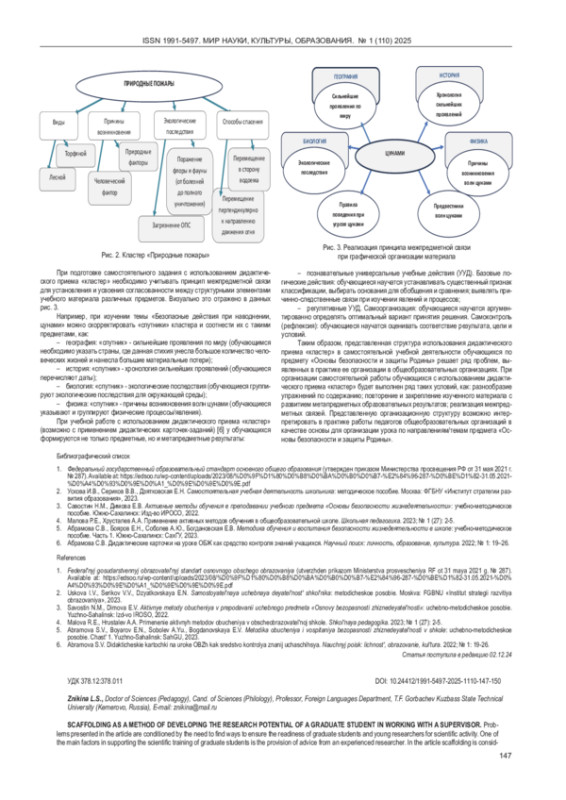 1. Попов Л.М., Устин П.Н. Скаффолдинг - метод актуализации интеллектуально-личностного потенциала субъекта научно-образовательной деятельности. Экопсихологические исследования: экология детства и психология устойчивого развития. 2020; № 6. Available at: https://cyberleninka.ru/article/n/skaffolding-metod-aktualizatsii-intellektualno-lichnostnogo-potentsiala-subekta-nauchno-obrazovatelnoy-deyatelnosti. EDN: YGYHOV