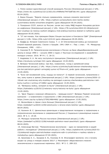 11. “Долг Родине и военная обязанность - превыше всего”: Ветеран Первой чеченской кампании - о патриотизме и параллелях с СВО [Электронный ресурс] // URL: https://www.zap.kp.ru/daily/27592/4864466/ (дата обращения 15.05.2025).