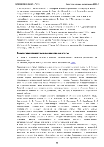 1. Кихней Л.Г., Кричевский Г.А. “Пиковая дама” и “Мелкий бес”: пушкинские аллюзии и их функции в романе Ф. Сологуба. Научный диалог. 2024. № 13(10). С. 252-272.