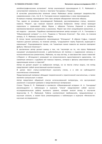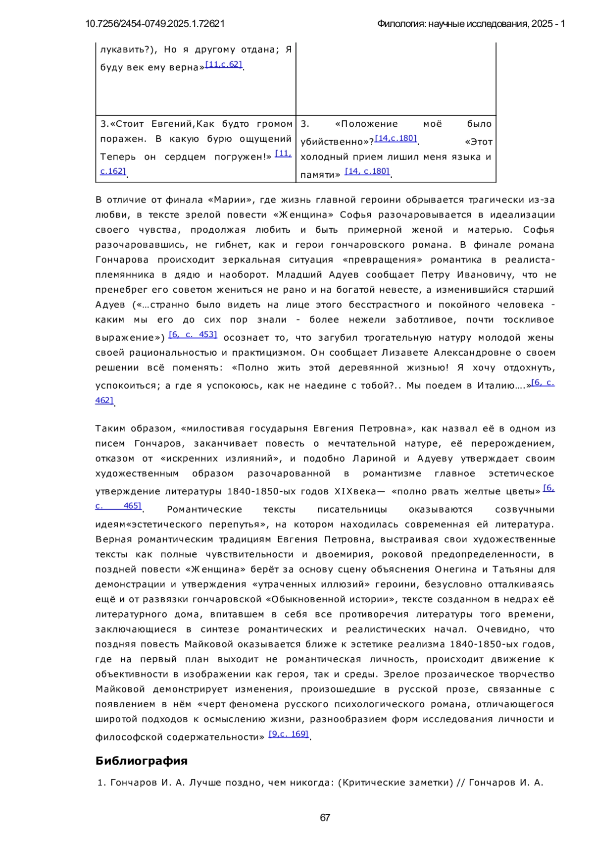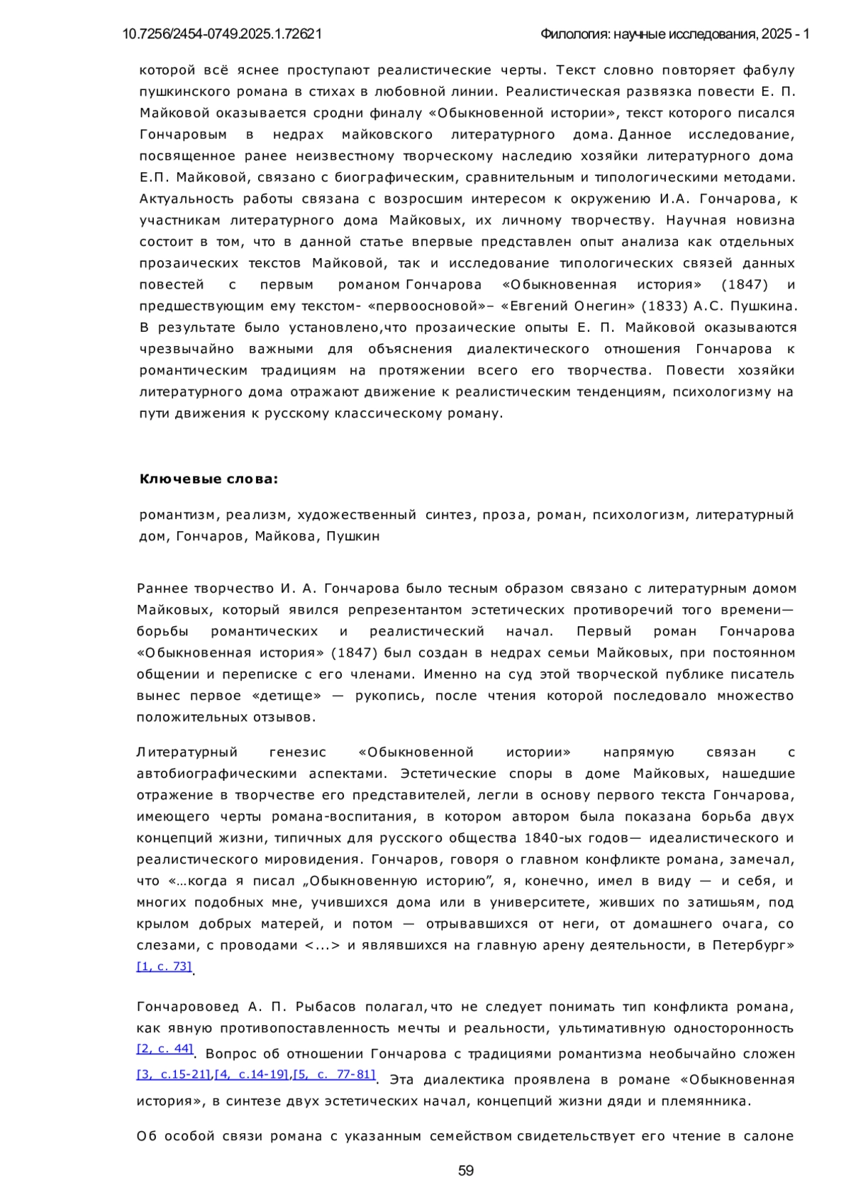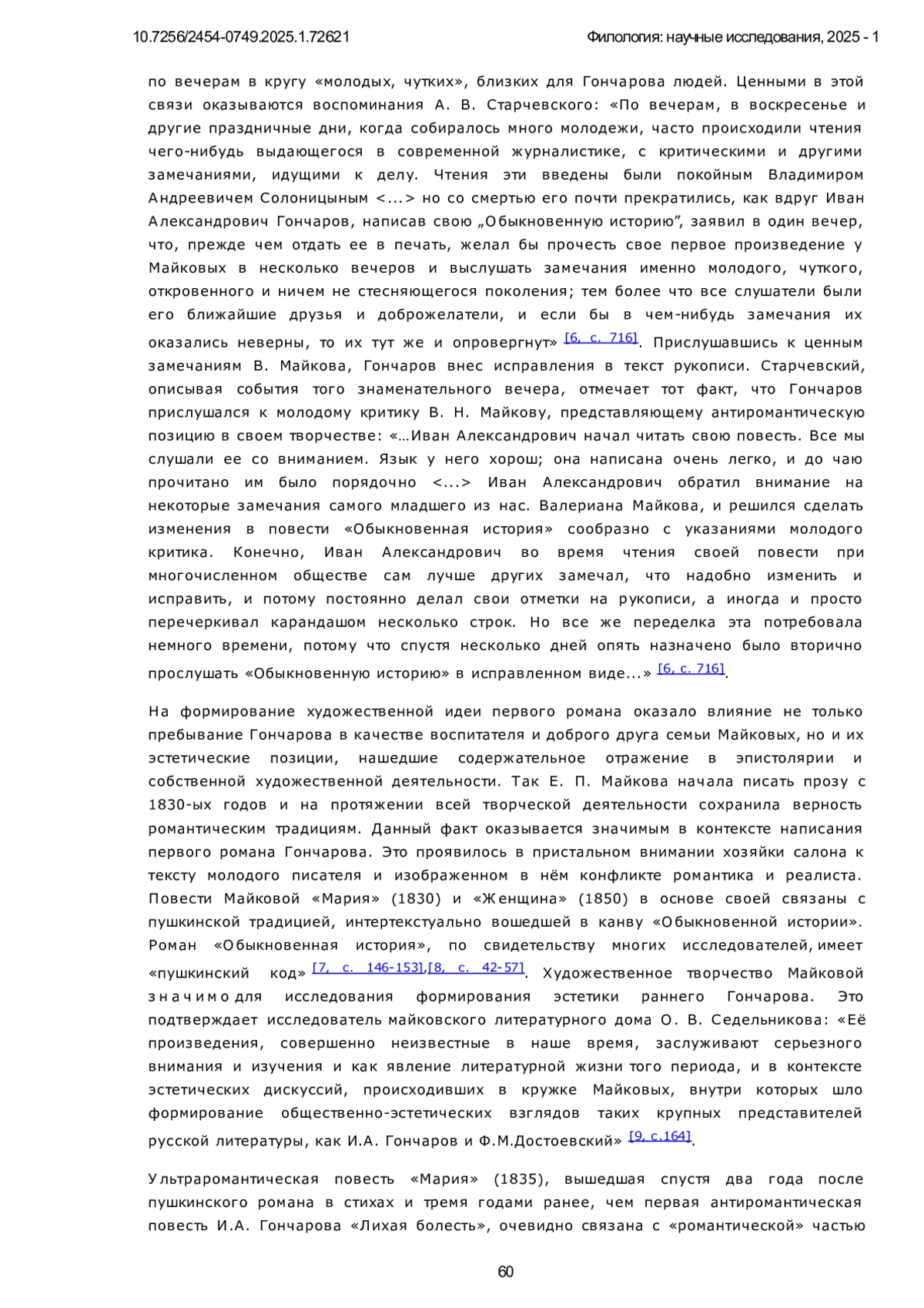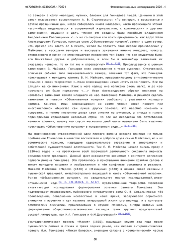 ПАВЛОВИЧ К. К. ПРОЗА Е. П. МАЙКОВОЙ В КОНТЕКСТЕ «ОБЫКНОВЕННОЙ ИСТОРИИ» И. А. ГОНЧАРОВА // ФИЛОЛОГИЯ: НАУЧНЫЕ ИССЛЕДОВАНИЯ. 2025. № 1