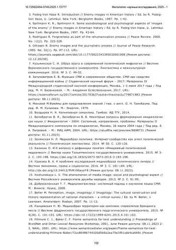 6. Ottosen R. Enemy images and the journalistic process // Journal of Peace Research. 1995. No. 32(1). Pp. 97-112. URL: https;//journals.sagepub.com/doi/ (Режим доступа: 12.12.20230). DOI: 10.1177/0022343395032001008