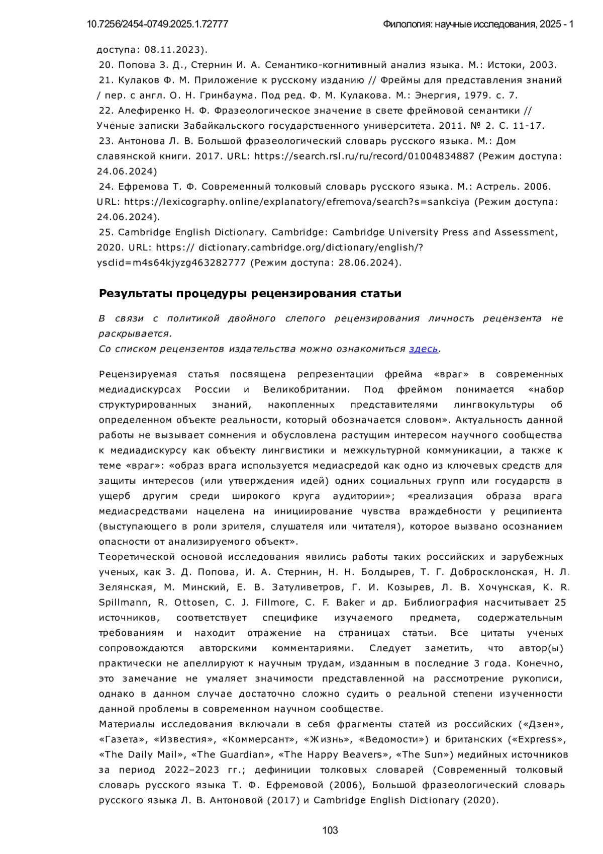 22. Алефиренко Н. Ф. Фразеологическое значение в свете фреймовой семантики // Ученые записки Забайкальского государственного университета. 2011. № 2. С. 11-17.