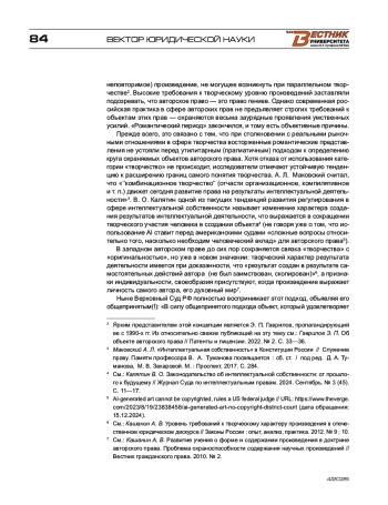 1. Гаврилов Э. П. Об объекте авторского права // Патенты и лицензии. - 2022. - № 2.