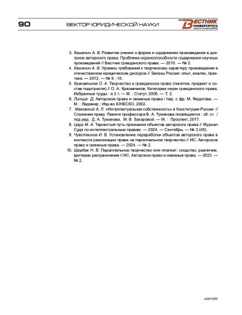 8. Цаур М. А. Тернистый путь признания объектов авторского права // Журнал Суда по интеллектуальным правам. - 2024. - Сентябрь. - № 3 (45).