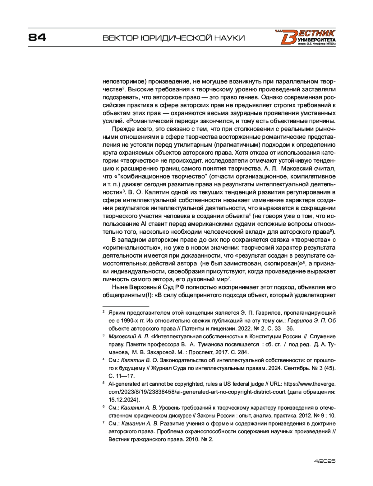 2. Калятин В. О. Законодательство об интеллектуальной собственности: от прошлого к будущему // Журнал Суда по интеллектуальным правам. - 2024. - Сентябрь. - № 3 (45).
