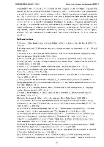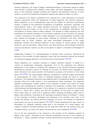 A s is well known, technological transformations of the digital age have necessitated the formation of a new research agenda that affects virtually all scientific paradigms, leading to significant quantitative and qualitative shifts encompassing both the theoretical and methodological foundations of modern science. Linguistic science, in particular, systematically faces a situation that mandates the rapid adaptation of its inherent research paradigms to the swiftly changing conditions of the digital environment. This dynamic not only opens new perspectives for studying the contemporary digital information space as a whole but also creates potential constraints that complicate the analysis of the entire language system within the framework of informational realities.