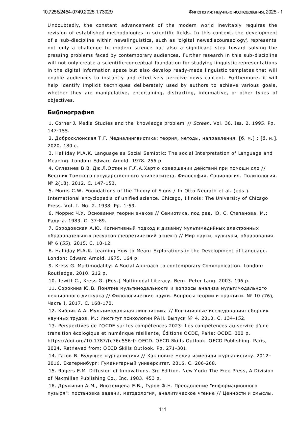 2. Добросклонская Т.Г. Медиалингвистика: теория, методы, направления. [б. м.]: [б. и.]. 2020. 180 с.