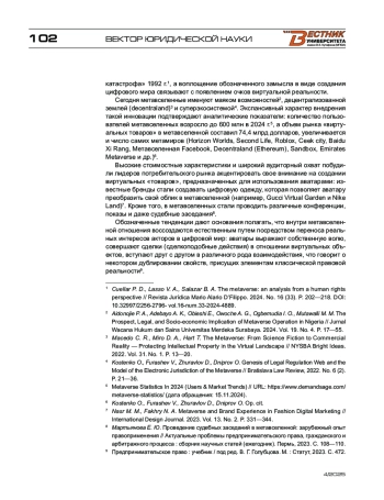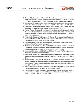 12. Cuellar P. D., Lasso V. A., Salazar B. A. The metaverse: an analysis from a human rights perspective // Revista Jurídica Mario Alario D’Filippo. - 2024. - No. 16 (33). - P. 202-218. - https://doi.org/10.32997/2256-2796-vol. 16-num.33-2024-4889.