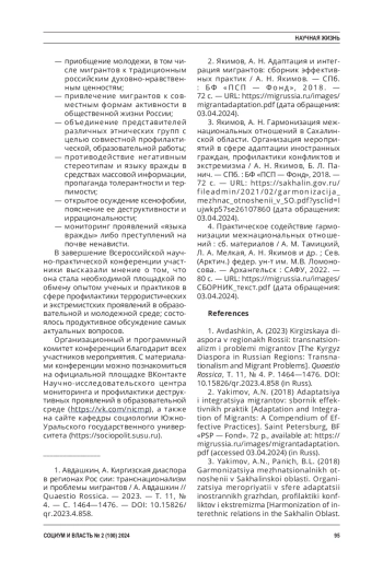 1. Авдашкин, А. Киргизская диаспора в регионах России: транснационализм и проблемы мигрантов / А. Авдашкин // Quaestio Rossica. - 2023. - Т. 11, № 4. - С. 1464-1476. - 10.15826/ qr.2023.4.858. DOI: 10.15826/qr.2023.4.858 EDN: DQRUOT