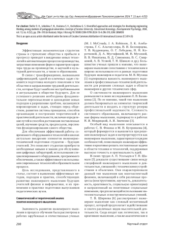 5. Усольцев A. П., Шамало Т. Н. O понятии “Инженерное мышление” // Формирование инженерного мышления в процессе обучения: материалыМеждународной научно-практической конференции (Екатеринбург, 07-08 апреля 2015 г.) / отв. ред. Т. Н. Шамало. Екатеринбург: Уральский государственный педагогический университет, 2015. С. 3-9. EDN: VJCIUJ