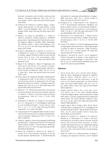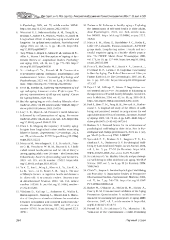 16. Zadworna M. Pathways to healthy aging - Exploring the determinants of self-rated health in older adults // Acta Psychologica. 2022. Vol. 228. Article number 103651. DOI: 10.1016/j.actpsy.2022.103651 EDN: TXFGWW