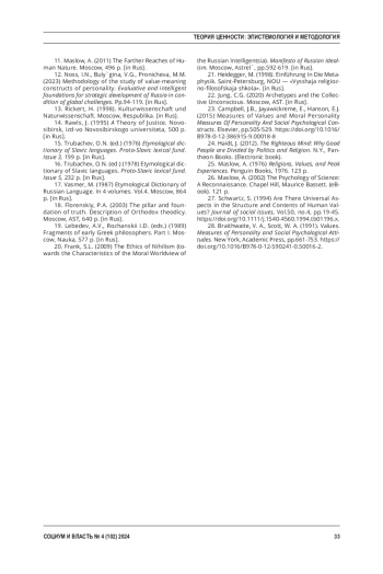 12. Носс, И. Н. Методология исследования ценностно-смысловых конструктов личности / И. Н. Носс, В. Г. Булыгина, М. М. Проничева / Ценностно-смысловые и интеллектуальные основания стратегического развития России в условиях глобальных вызовов: кол. моногр. - М., 2023. - С. 94-119.