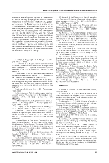 15. Rorty, A. The Functional Logic of Cartesian Passions / A. Rorty // Emotional Minds: The Passions and the Limits of Pure Enquiry in Early Modern Philosophy / ed. by S. Ebbersmeyer. - Berlin, 2012. - Р. 3-18. DOI: 10.1515/9783110260922.3