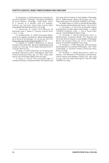 20. Verbeek, T. Descartes’s Letter to Voetius. The Method of Philosophy and Morality / T. Verbeek // Church History and Religious Culture. - 2020. - Vol. 100 (2 - 3). - Р. 145-156. DOI: 10.1163/18712428-10002010 EDN: ZDWINE