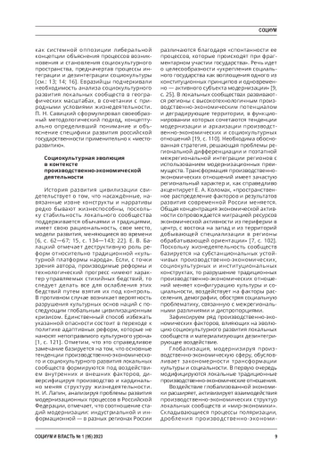Выводы. Динамика социокультурных процессов детерминирует возникновение разнонаправленных полюсов социокультурной жизни: от стремления сохранить традиционную социокультурную среду до полного принятия содержательных качеств либеральной социокультуры, разрушающей социокультурную идентичность локальных сообществ.