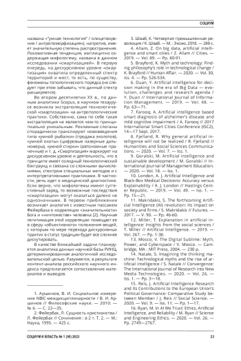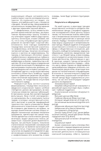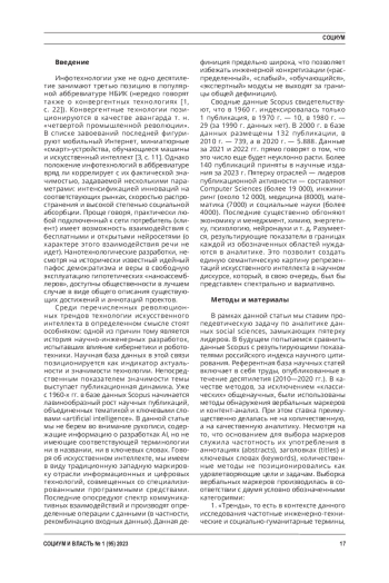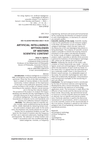 Введение. Искусственный интеллект является трендом НБИК-конвергенции и инфотехнологий в частности. С 70-х гг. XX в. он выступает в качестве предмета интенсивных дискуссий в научном сообществе. Непосредственным показателем значимости темы выступает публикационная динамика и ежегодный прирост числа индексируемых статей. Согласно статистике, западные общественные науки находятся в пятерке отраслевых лидеров.