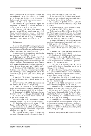 20. Радаев, В. В. Миллениалы на фоне предшествующих поколений: эмпирический анализ / В. В. Радаев // Социологические исследования. - 2018. - № 3. - С. 15-33. EDN: YVQXQU