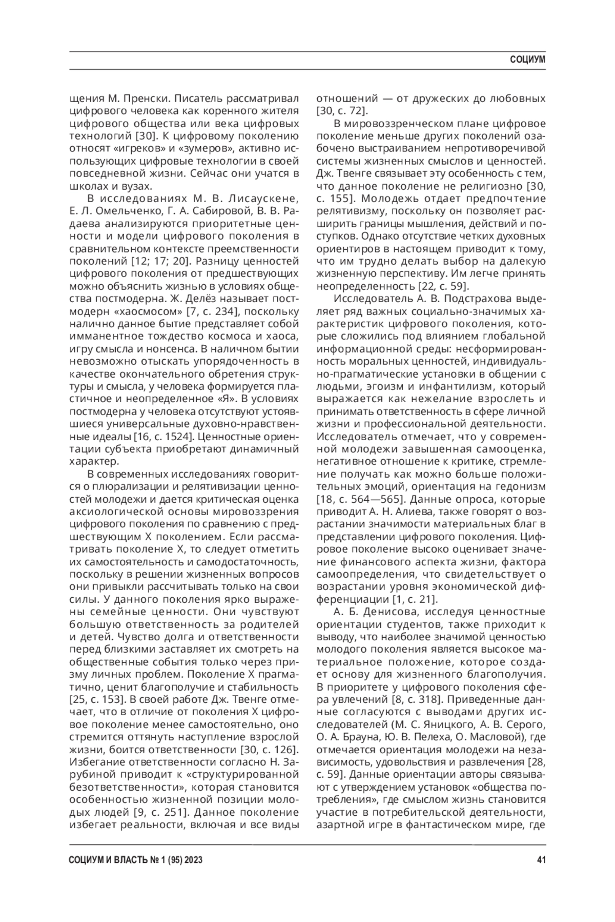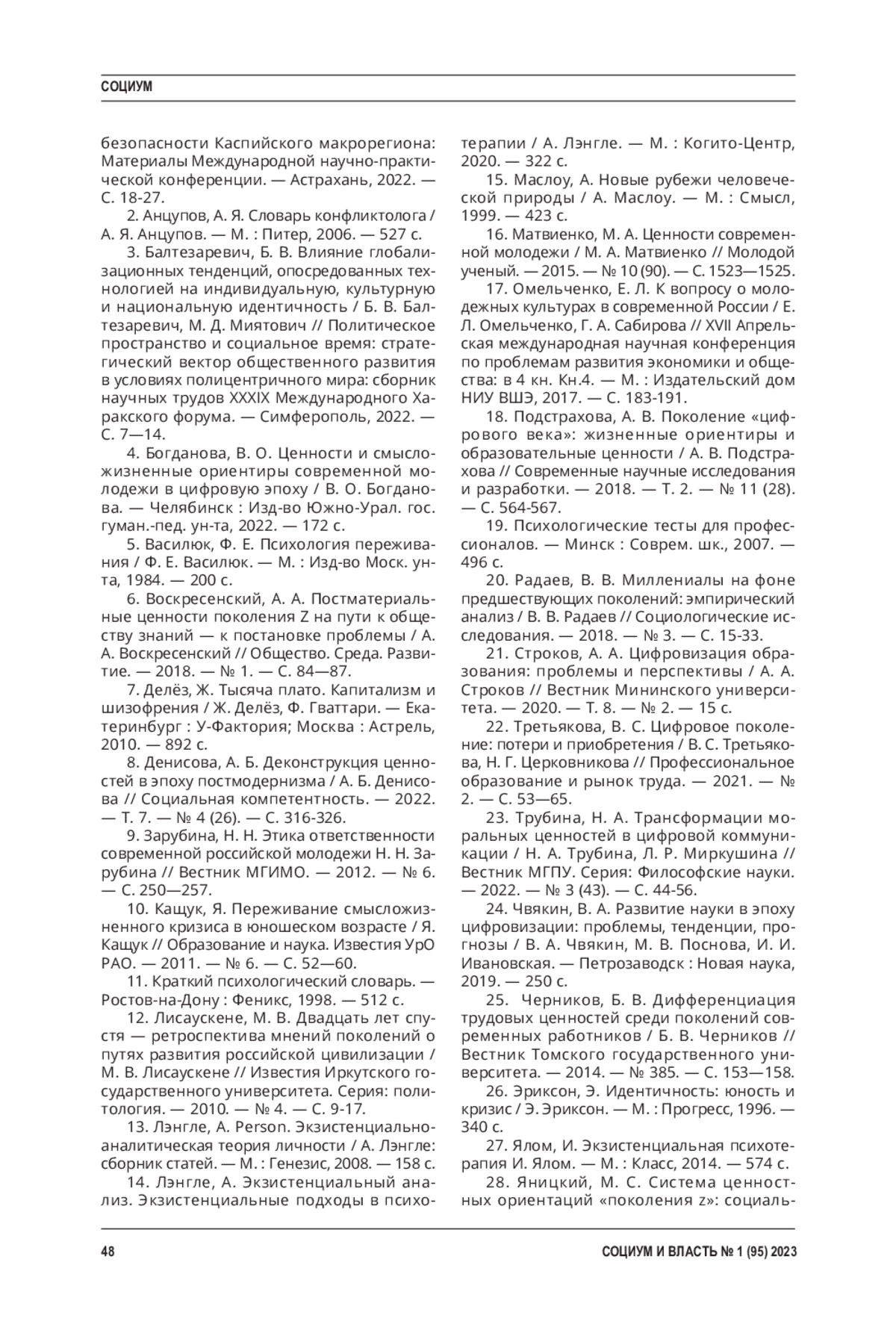 28. Яницкий, М. С. Система ценностных ориентаций “поколения z”: социаль ные, культурные и демографические детерминанты / М. С. Яницкий, А. В. Серый, О. А. Браун, Ю. В. Пелех, О. Маслова // Сибирский психологический журнал. - 2019. - № 72. - С. 46-67. EDN: VHKSYP