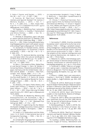 9. Camino, M. “Red Fury”: Historical memory and Spanish football / M. Camino // Memory Studies. - 2014. - Vol. 7. - № 4. - P. 500-512. - 10.1177/1750698014531594 (дата обращения: 16.01.2023). DOI: 10.1177/1750698014531594(