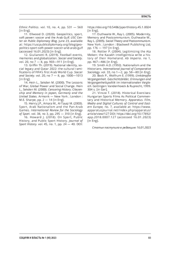 6. Amara, M. Sport and Political Leaders in the Arab World / M. Amara // Histoire et Politique. - 2014. - № 2 (23). - P. 142 - 153.