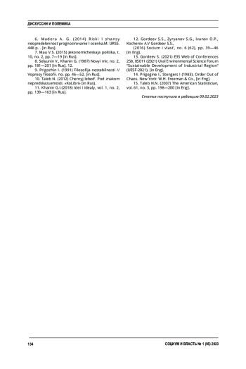 5. Гордеев, С.С. “Эффект колеи” в развитии социально-экономического пространства региона. Часть 2. Кризисная трансформация “эффекта колеи” и её последствия для Челябинской области / С. С. Гордеев, С. Г. Зырянов, А. В. Подопригора // Социум и власть. - 2020. - № 1 (81). - С. 30-43. -. DOI: 10.22394/1996-0522-2019-5-84-97 EDN: ERUSLA