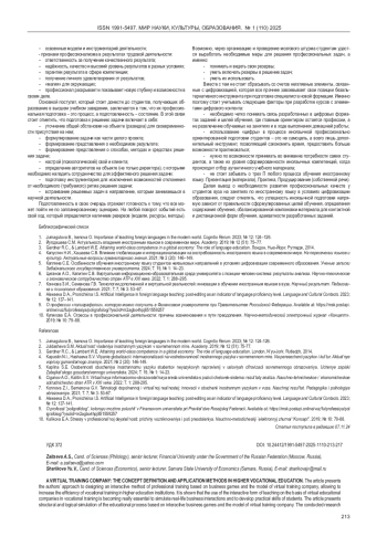12. Стоянов С.Н., Глушкова Т.А., Стоянова-Дойчева А.Г, Крастева И.К. Виртуальное образовательное пространство: концепция, архитектура, применение. Информатика и образование. 2021; № 9: 47-54. EDN: WUGCHK