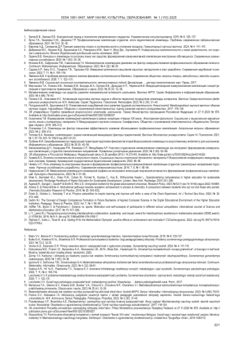 2. Бутко Г.А., Киселева Н.Ю., Шашкина Г.Р. Профессиональные компетенции студентов: итоги педагогической олимпиады. Проблемы современного педагогического образования. 2021; № 72-2: 32-35. EDN: WPFBVZ