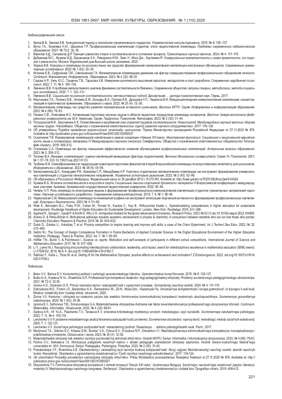 15. Сказочкина Т.В. Формирование олимпиадной компетенции в рамках концепции “Навыки XXI века”. Иностранная филология. Социальная и национальная вариативность языка и литературы: материалы IV Международного научного конгресса. Симферополь: Общество с ограниченной ответственностью “Издательство Типография “Ариал”, 2019: 406-412. EDN: UJIQKQ