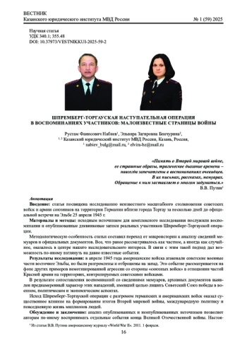 Обсуждение и заключение: анализ опубликованных и неопубликованных источников позволяет авторам по-иному воспринимать отдельные события конца Великой Отечественной войны. Настоящее понимание того исторического периода стало возможным лишь потому, что исследователям стали доступны неизвестные или малоизвестные факты о тех тяжёлых днях, выпавших на долю советского народа.