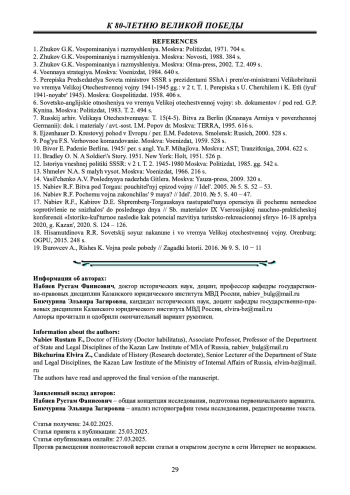 16. Набиев Р.Ф. Почему война закончилась 9 мая? // Идель. 2010. № 5. С. 40 - 47.