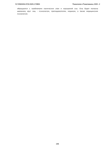 10. Федоряка Д.А. Особенности внутренней картины болезни у лиц с паническим расстройством: автореф. дис.. … канд. психол. наук: 19.00.04. СПб., 2019. 25 с.