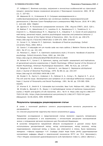 9. Гордеева Т. О., Сычев О. А., Осин Е. Н. Разработка русскоязычной версии Теста диспозиционного оптимизма (LOT) // Психологическая диагностика. 2010. № 2. С. 36-64.