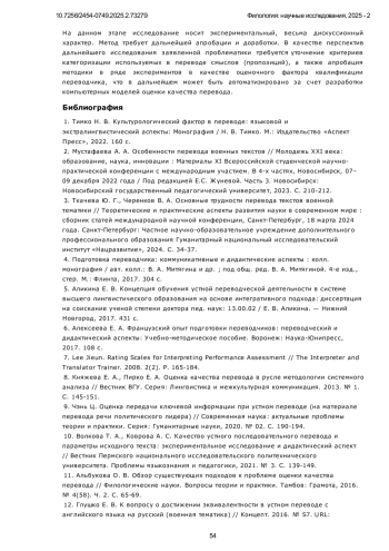 10. Волкова Т. А., Коврова А. С. Качество устного последовательного перевода и параметры исходного текста: экспериментальное исследование и дидактический аспект // Вестник Пермского национального исследовательского политехнического университета. Проблемы языкознания и педагогики, 2021. № 3. С. 139-149.