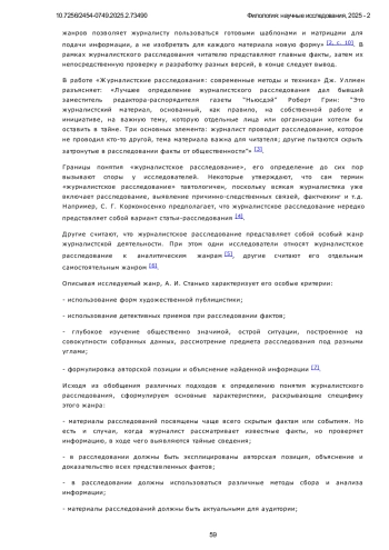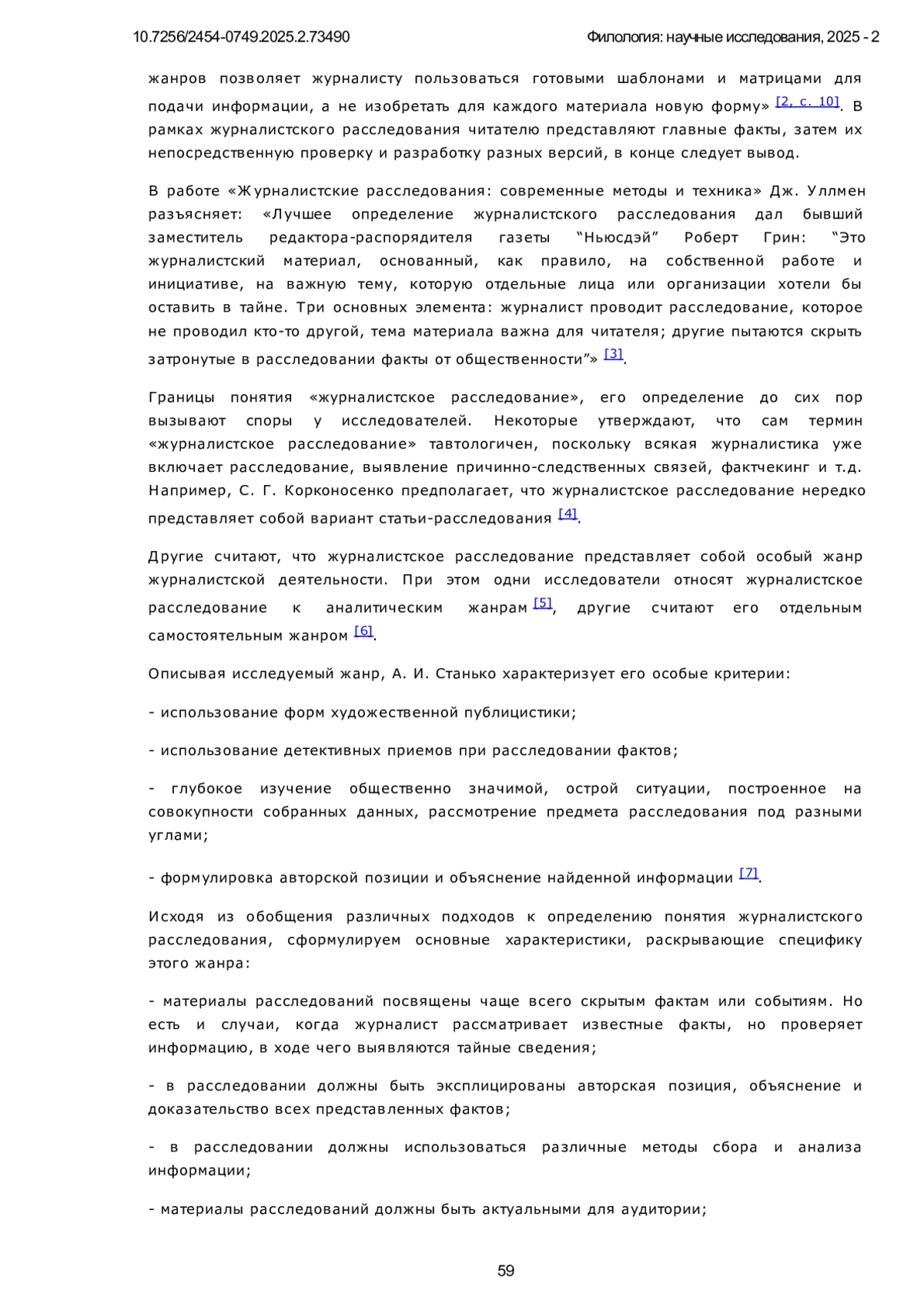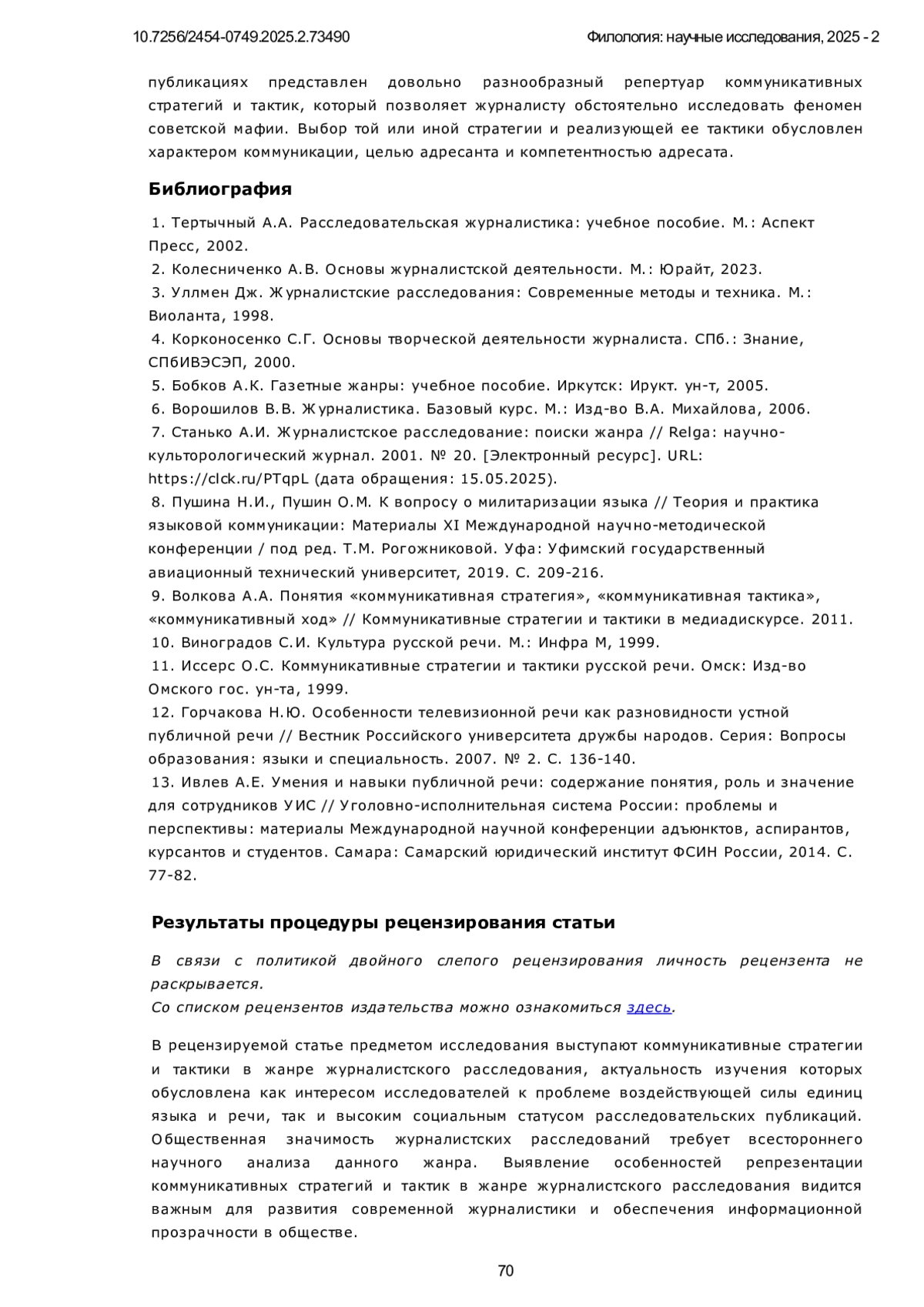 7. Станько А.И. Журналистское расследование: поиски жанра // Relga: научно-культорологический журнал. 2001. № 20. [Электронный ресурс]. URL: https://clck.ru/PTqpL (дата обращения: 15.05.2025).